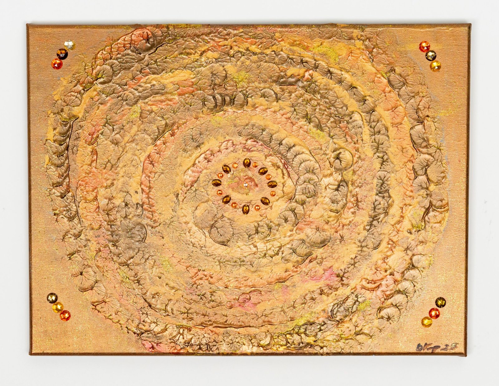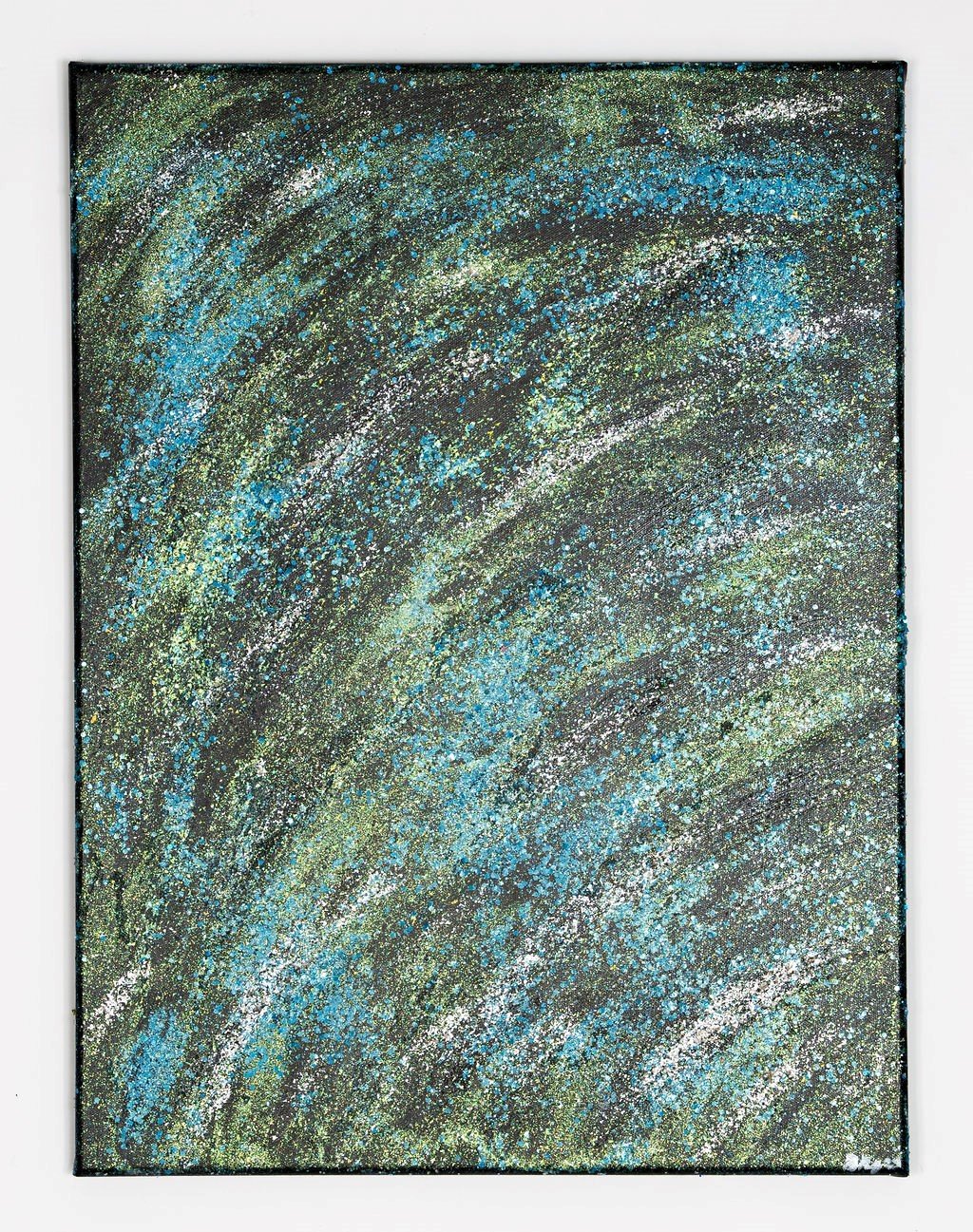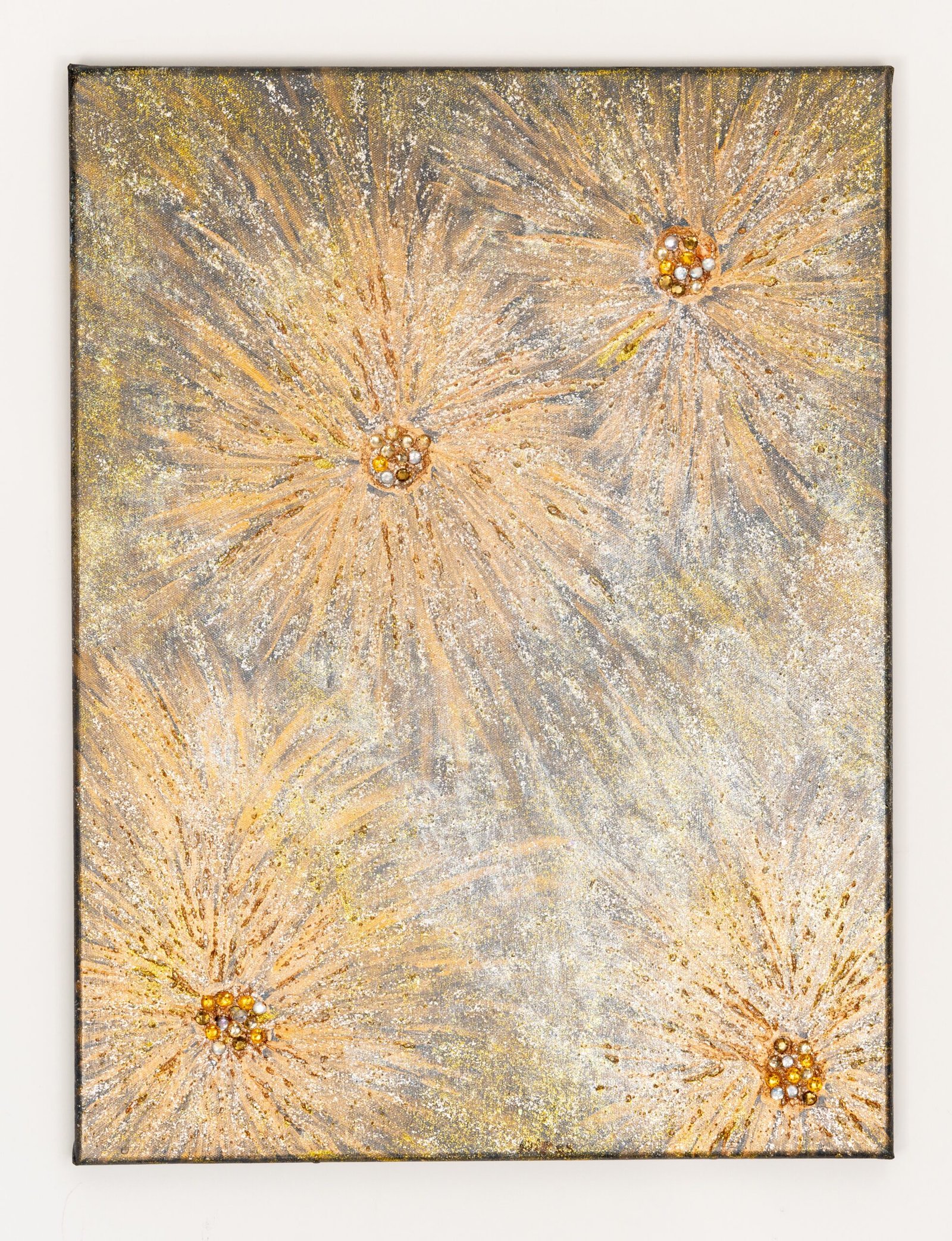 Acrylic and glitter medium embedded with rhinestones on black canvas